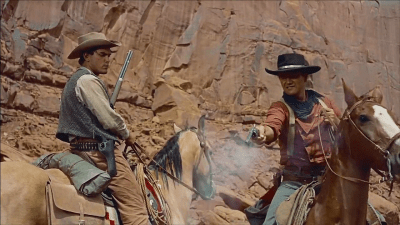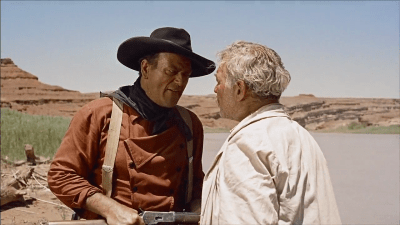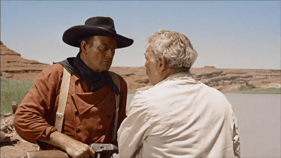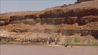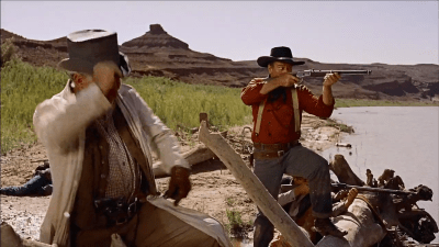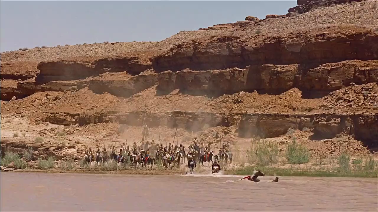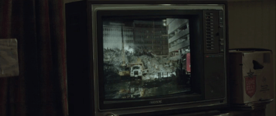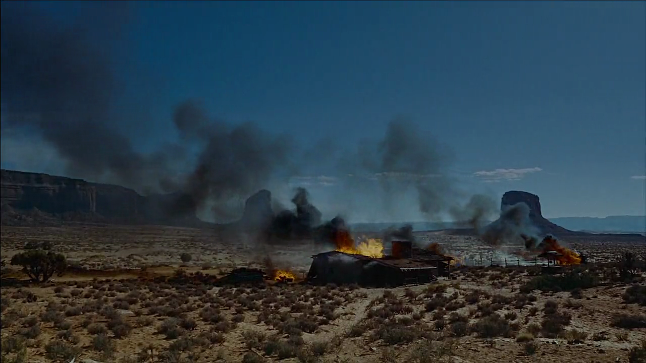 And yet, there is a physical component to watching Bay. There’s a scene with a bunch of Transformers jump all around Monument Valley (and earlier, a poster for Hawks’s El Dorado!); what’s astonishing to watch is how each little jump brushes up little specks of rock and dust throughout, each moving with total respect to the physical universe these CGI creates are visiting. The integration of Bay’s physical elements and his digital effects is astonishing, especially given the amount of dirt, rock, glass, concrete, and other material that makes up any given frame of his film. There’s particularly a shot of the camera gliding toward a boat in an early action scene as marines are about to raid a Transformer where I noticed how many separate elements the camera was catching without feeling overwhelming. As others have noted, 3D has slowed his camera down, and he’s almost exclusively broken from any sense of chaos cinema to downright classical continuity – the spaceship chase through Chicago might be a new standard in terms of three-dimensional spatial continuity. Additionally, a final climax involving hundreds of physical moving objects floating up and down as the digital effects ask them to defy gravity is the work of each shot thoroughly investigating each part of the frame—no pixel left unturned. There’s simply a detail to Bay that eludes the grand gesture filmmaking in other blockbusters I’ve indulged this year, where things move cleanly but rarely with a reverence to the potential of cinema to capture something authentic, even if it’s in a world of CGI alien robots. Bigger is not necessarily better, but the further away Bay travels from humans and closer to the vision of maximalism, the simulacra suddenly turns tactile—it feels real, which in the spectatorial position of cinema, is close enough to saying it is real.